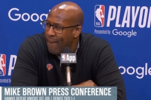 24直播网4月21日讯 NBA季后赛G2,尼克斯主场106-107遭老鹰逆转。赛后主帅迈克·布朗接受了采访,以下为采访全文。
